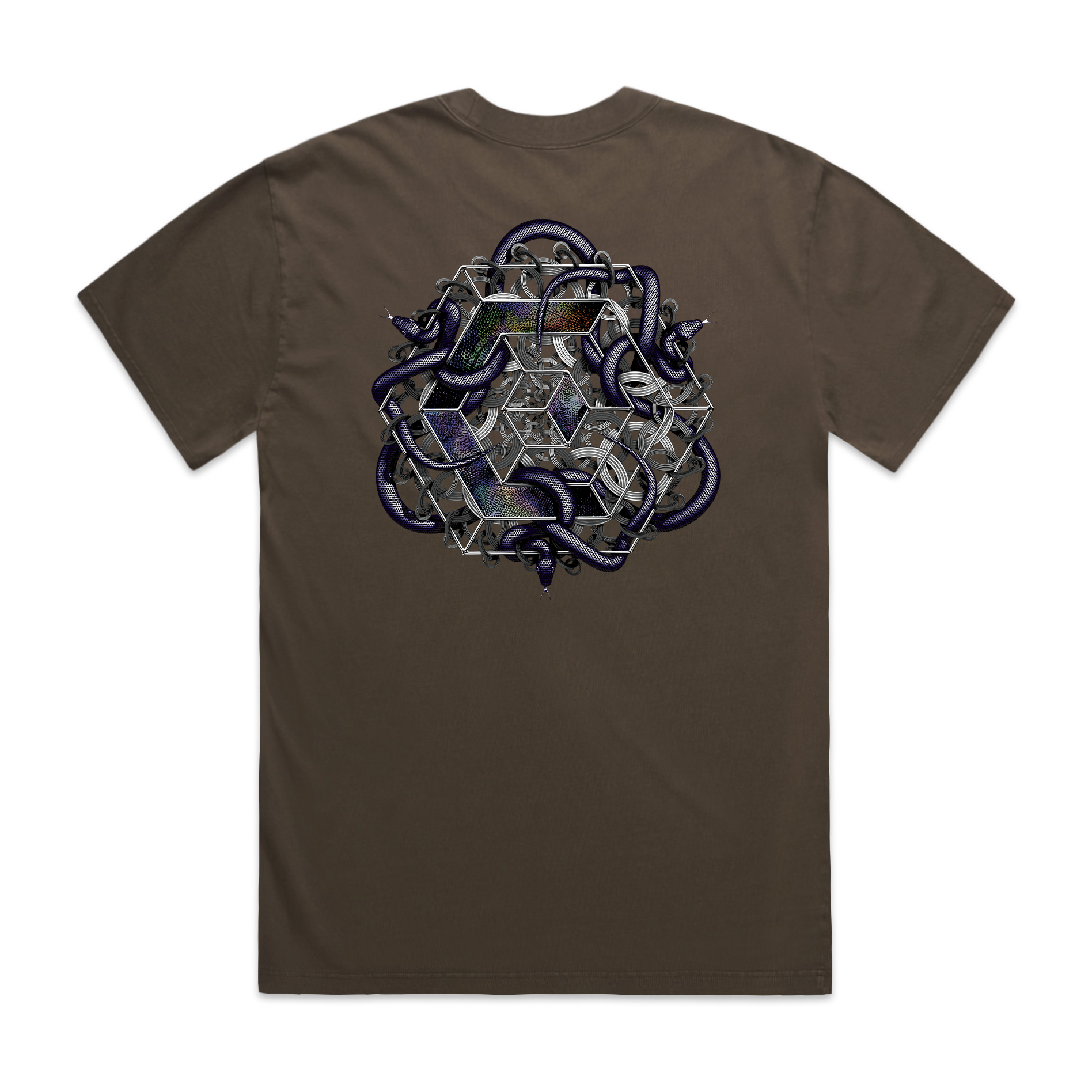 Front & Back Snakes Screen Print, 240GSM Brown T-Shirt